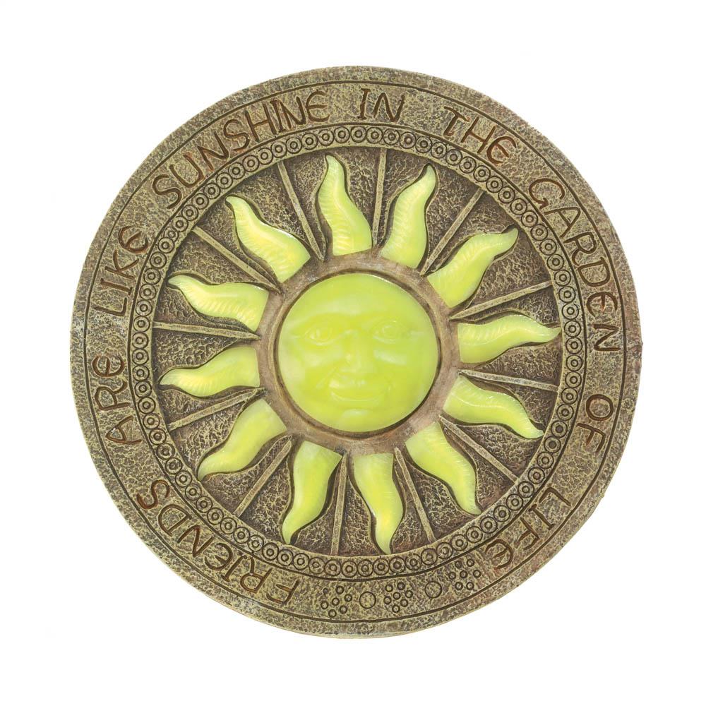 • Friends are the sunshine in the garden of life! This cool garden stepping stone features a bright yellow sun that soaks up sunlight by day and then glows by night. It's made from durable polyresin and will be the perfect addition to your garden path.