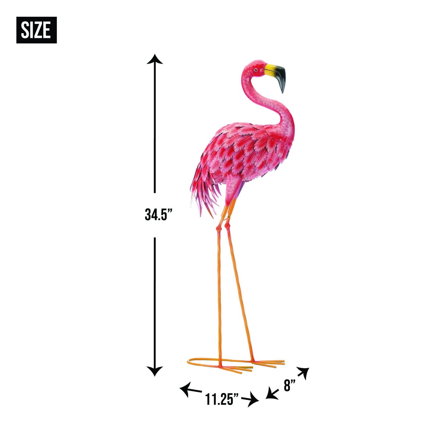 • Add some personality and vibrant color to your yard with this fabulous flamingo.! Your yard will pop with the bright pink 'feathers' of this metal yard flamingo that stands on lean long legs.