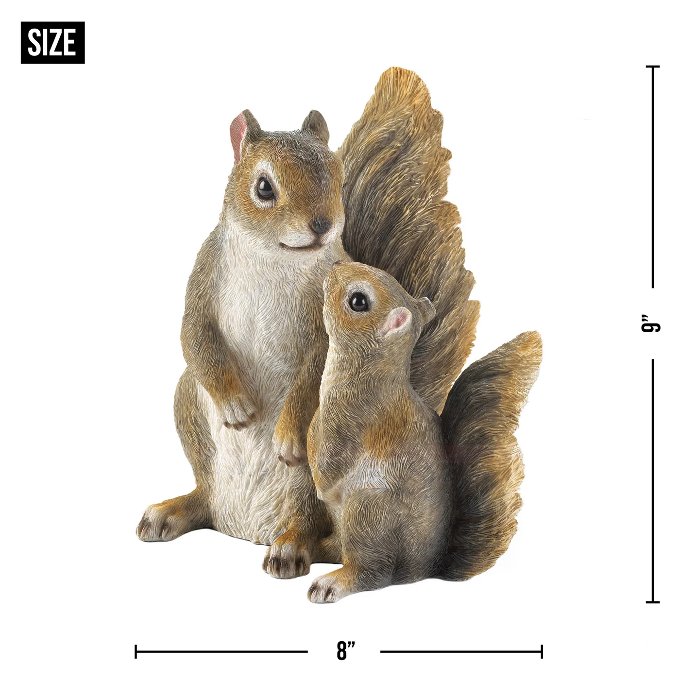 • Mommy and me squirrels figurine weighs 2.4 lbs. and measures 8x6.5x9 inches.