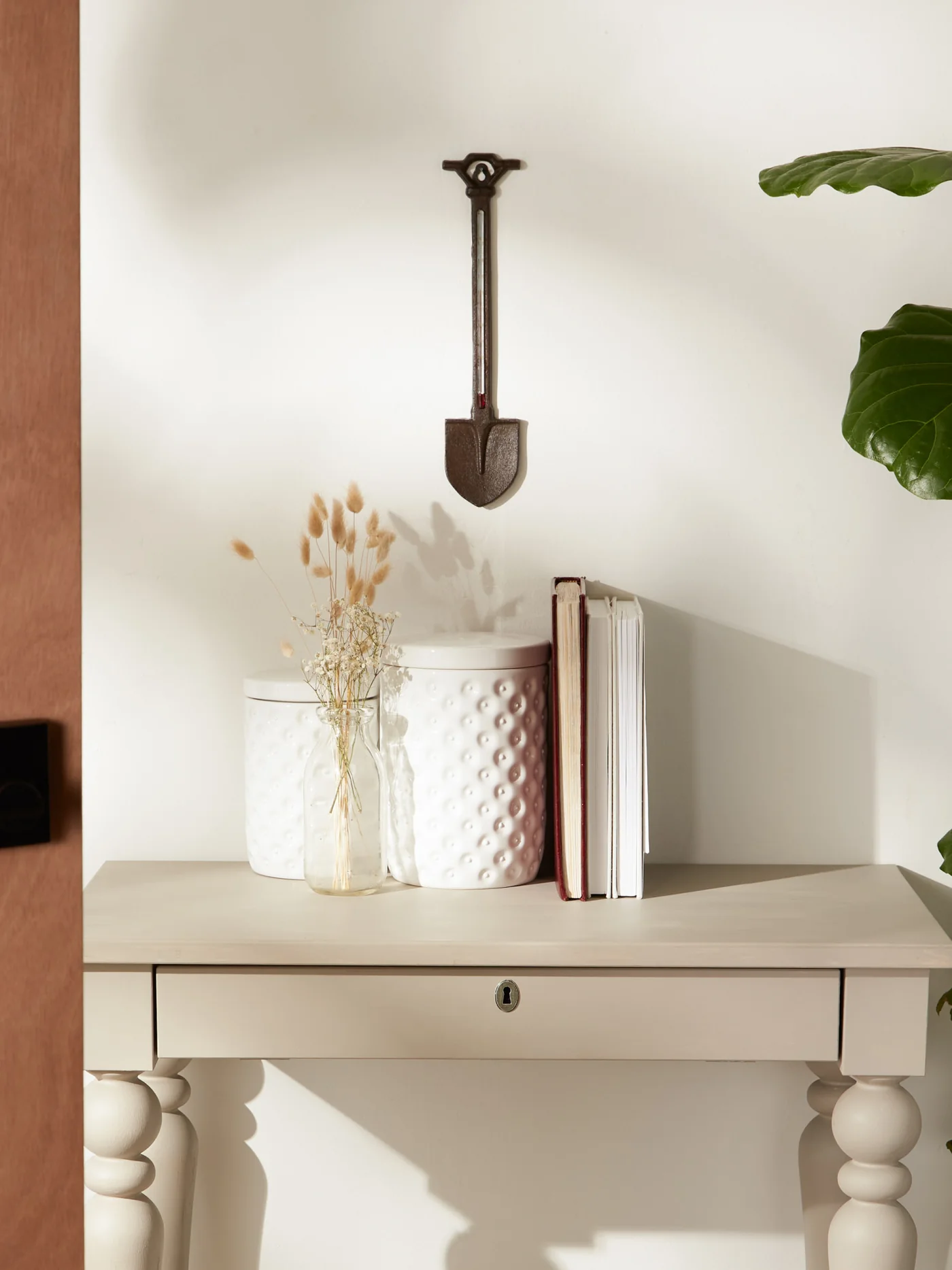 • This shovel shaped thermometer is made from durable cast iron and perfect for decorating your garden or yard space. Easy to hang and suitable for both indoor and outdoor use.